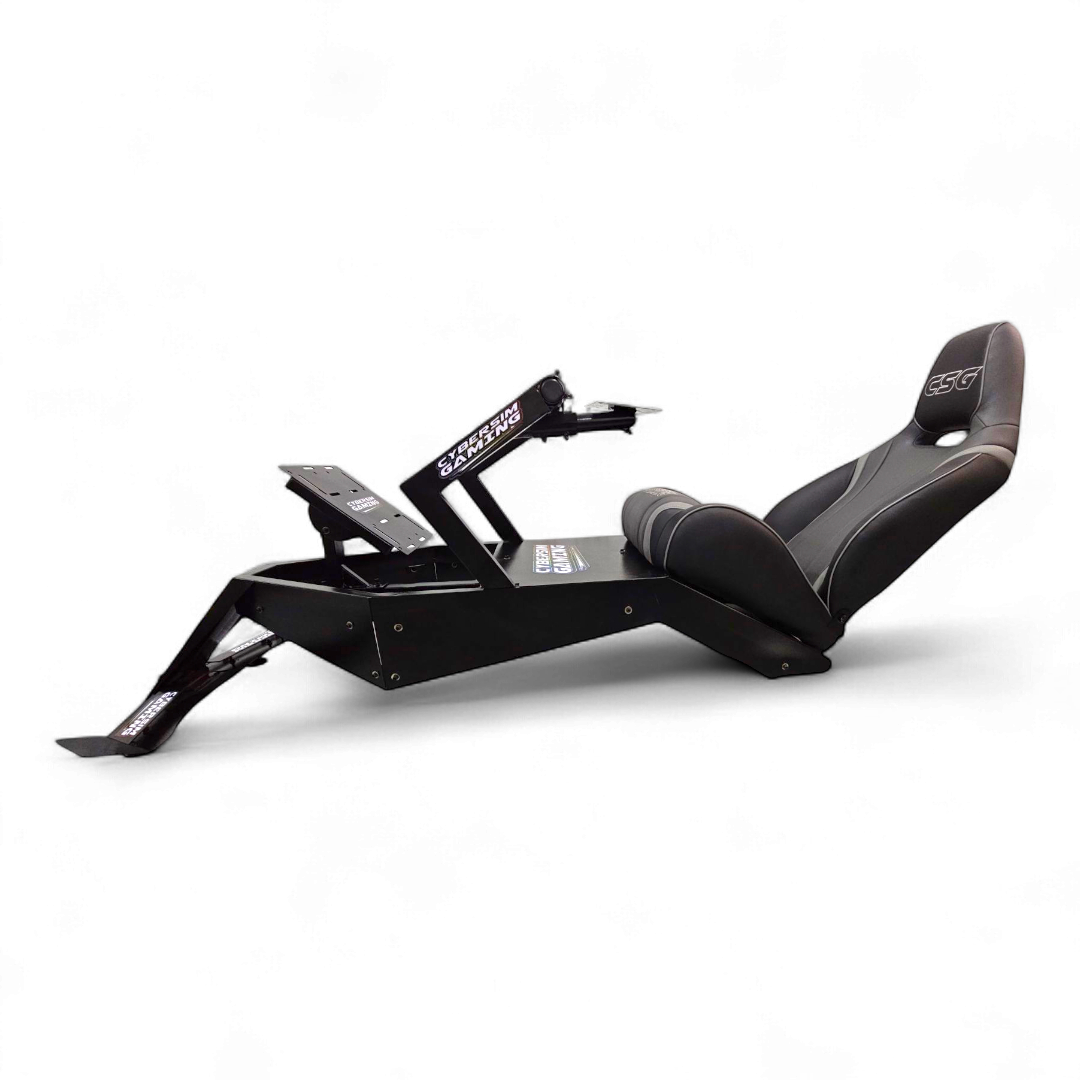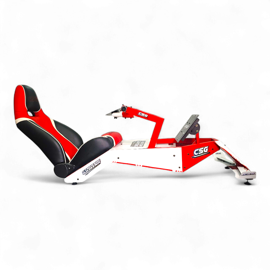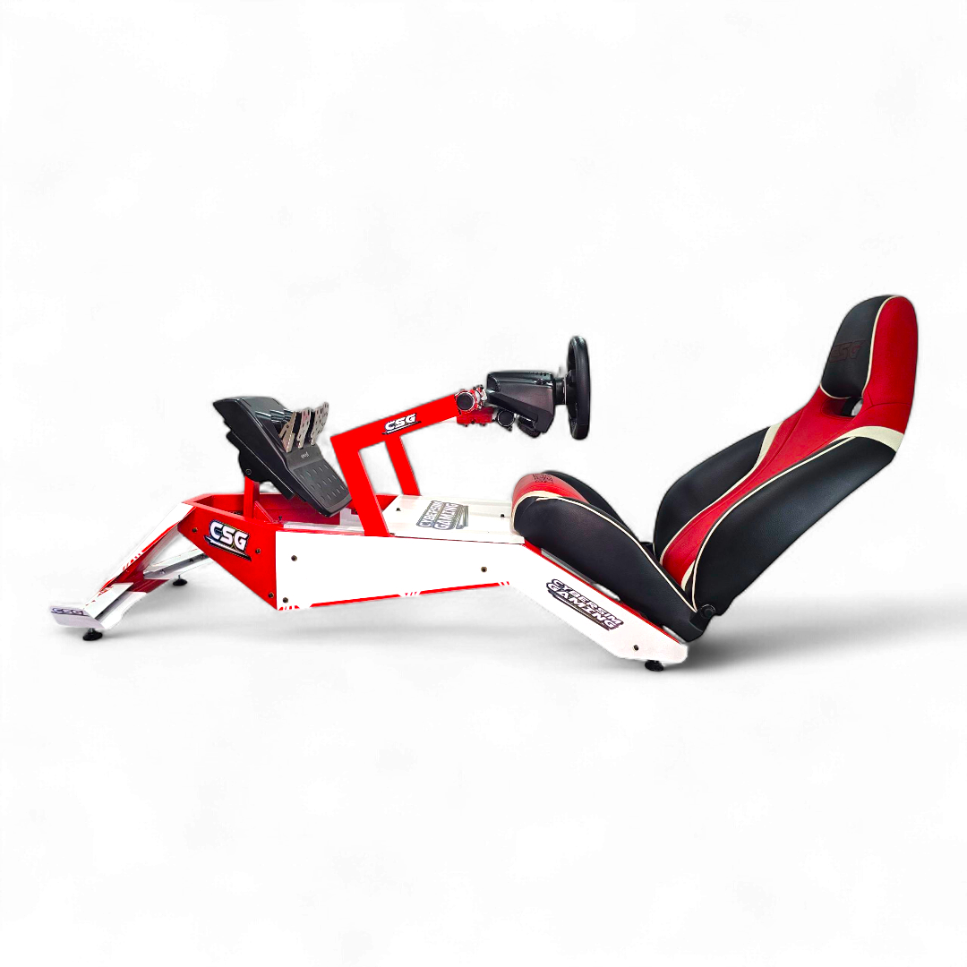 Fabricado por Cyber Sim Gaming, el CSG – F1 redefine la experiencia de simulación profesional con una estructura inspirada en la posición de manejo real de un monoplaza de Fórmula 1.