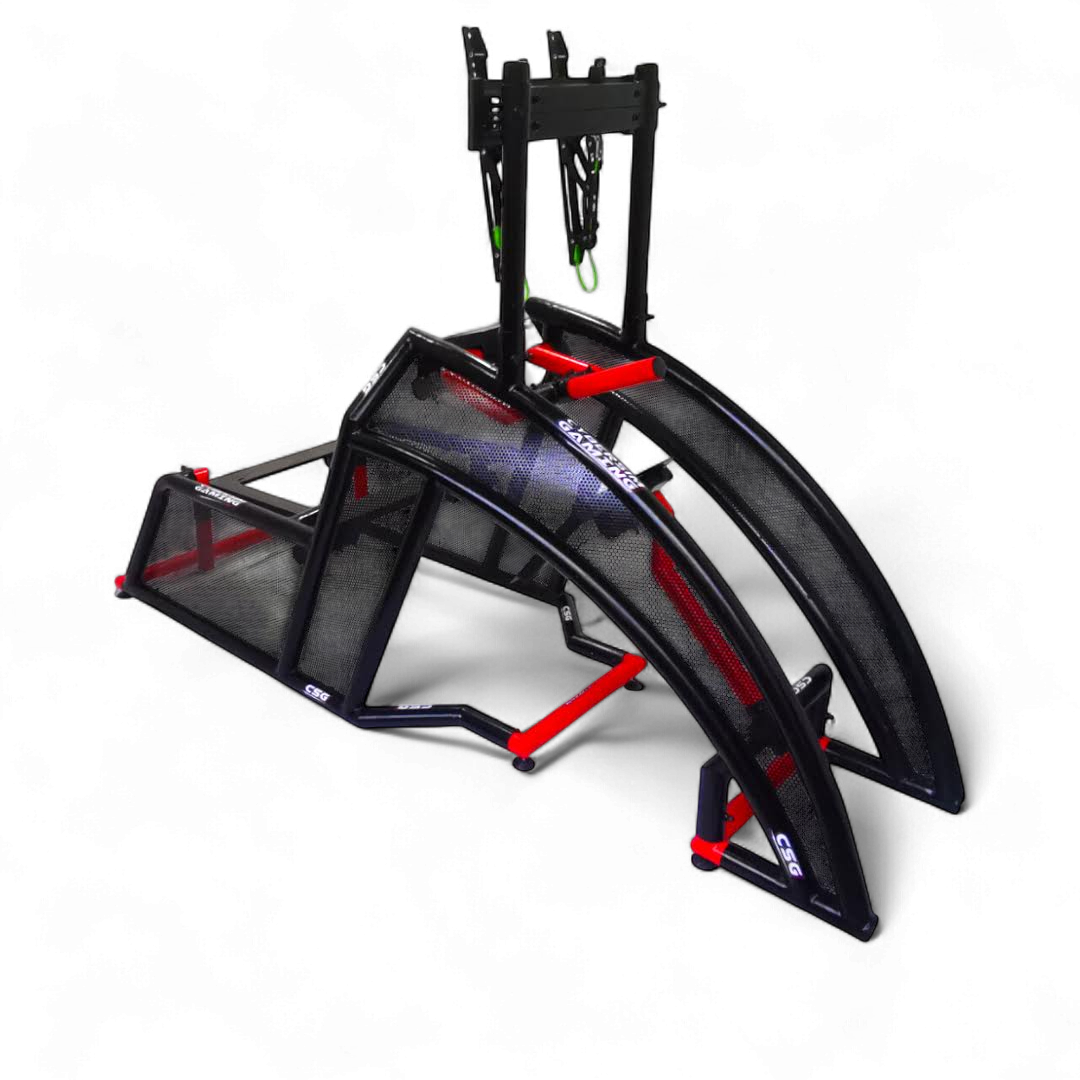 Fabricado por Cyber Sim Gaming, el CSG – SUPRA representa el siguiente nivel en estructuras de simulación profesional. Construido completamente en acero al carbón y soldado con tecnología MIG, este cockpit está diseñado para resistir sesiones intensas de simracing y entrenamiento avanzado con la máxima estabilidad.